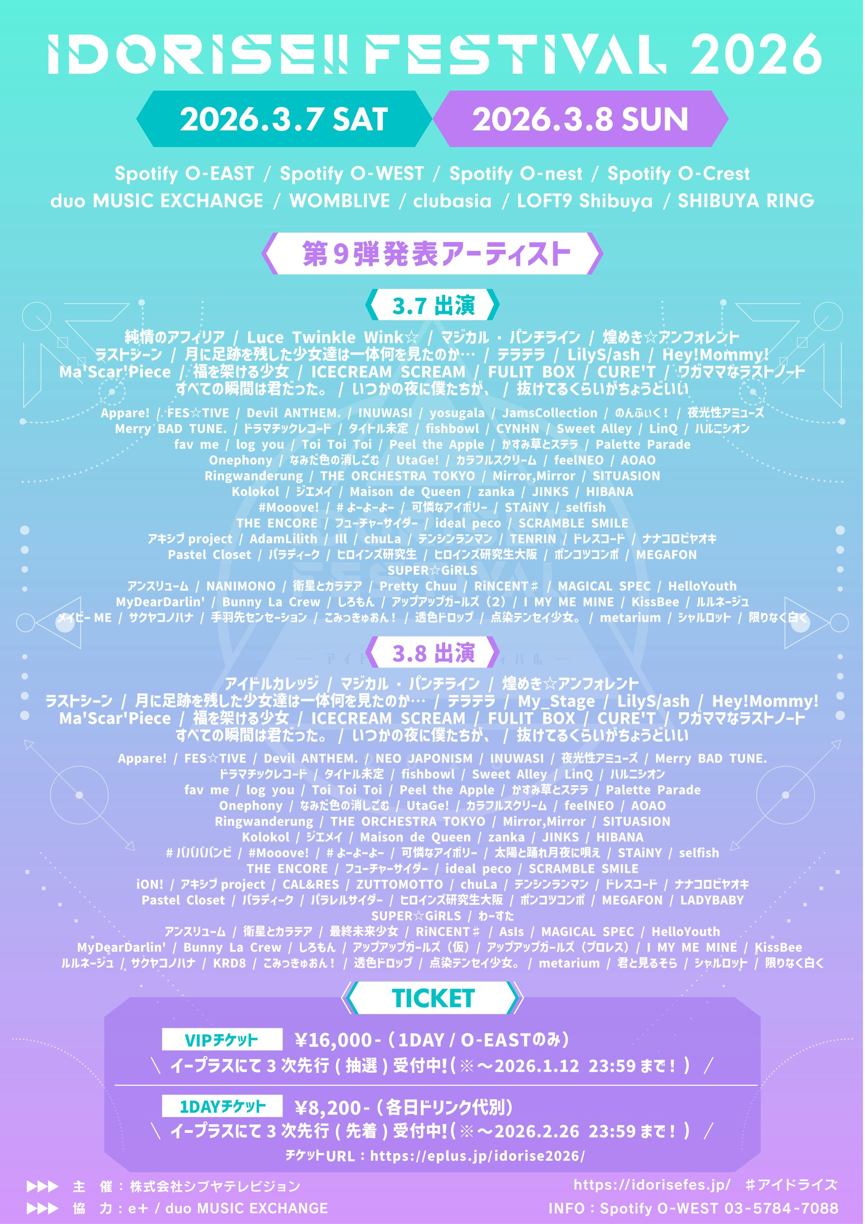 会場:Spotify O-EAST、Spotify O-WEST、Spotify O-nest、Spotify O-Crest、duo MUSIC EXCHANGE、WOMB、clubasia、LOFT9 Shibuya SHIBUYA RING (※9会場連動)